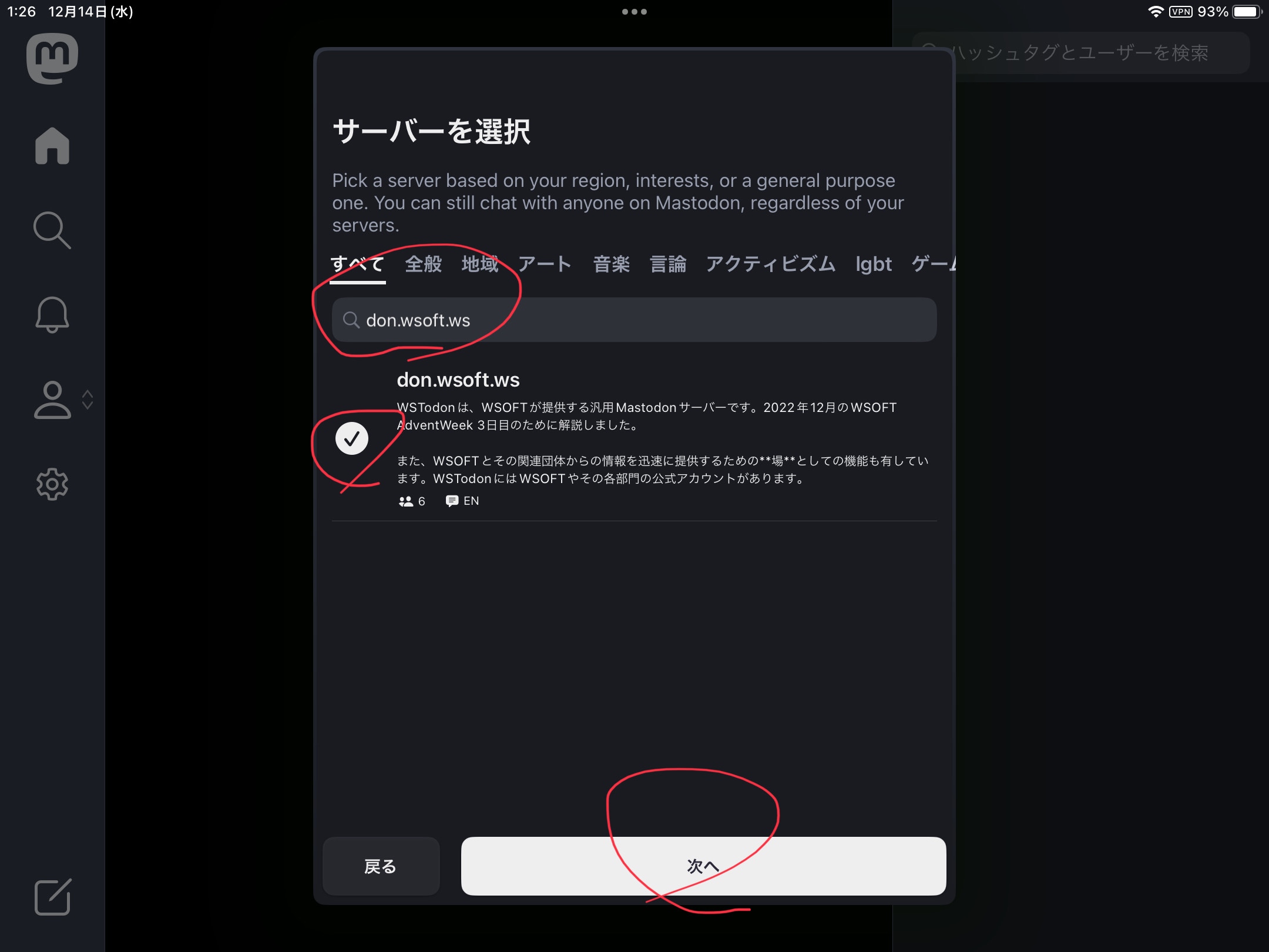 サーバーを選択欄にdon.wsoft.wsと入力します。don.wsoft.wsが一覧に表示されたら、それをチェックし次へ進みます。